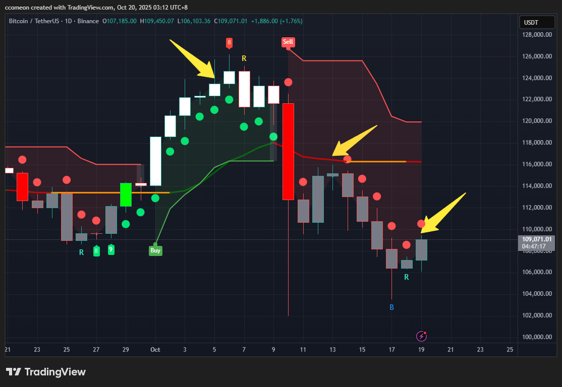 幣市在 10/11 「黑色星期五」之後走勢一直向下,現在已經固定在 10.8 萬美元之間徘徊,加上整週巨大的暴倉額影響到市場情緒,每逢川普發言市場都會出現恐懼避險,導致幣價一直被打壓。
