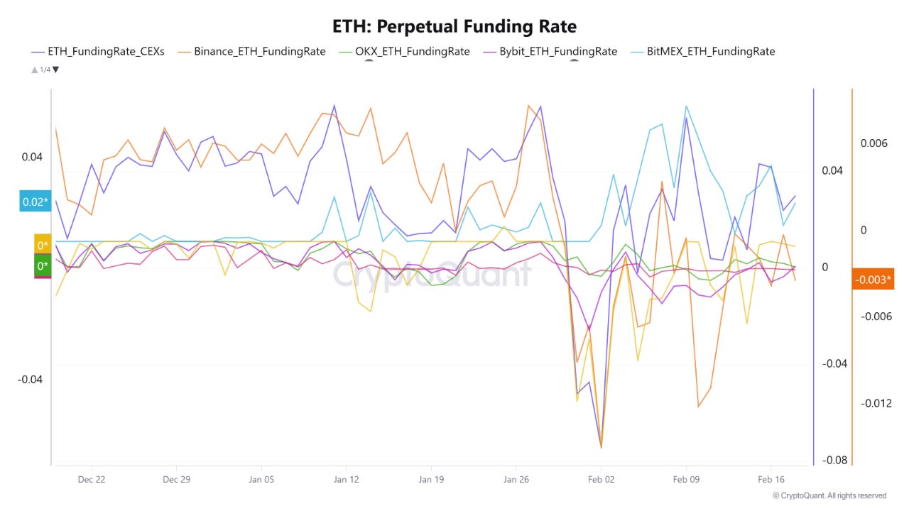 回顧 2024 年 10 月,ETH 的價格約在 2,400 美元至 2,600 美元之間,當時主要中心化交易所的總合資金費率介於 0.055% 到 0.097% 之間,各大交易所步調一致,幣安、OKX、Bybit 均為正值,多頭倉位堆積,市場風險偏好極高。但如今,ETH 價格落在 1,981 美元附近,但資金費率的格局已發生結構性反轉,總合費率已崩跌至僅剩 +0.030%,而幣安更是出現了 -0.0034% 的負值,這意味著現在是空頭在向多頭支付費用,市場都在做空。