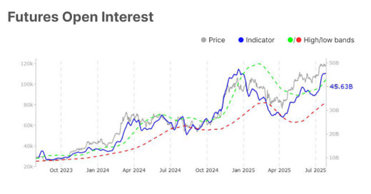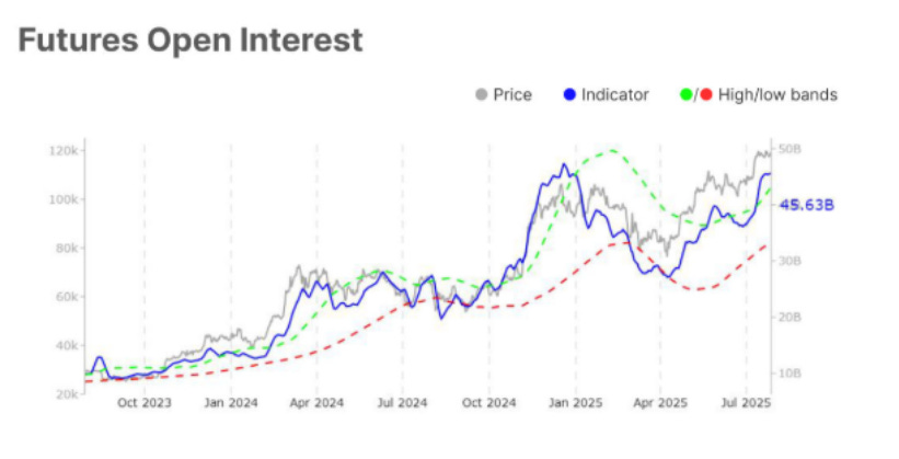 根據 Glassnode 分析,過去一週,比特幣現貨價格在觸及歷史新高後回落,引發市場盤整,整體呈現多空交織的複雜局面。儘管價格回調,期貨市場的未平倉合約總值仍微升至 456 億美元,維持在高位水平。同時,多頭部位的資金費率持續支付,反映出槓桿投資者的樂觀情緒並未消退。